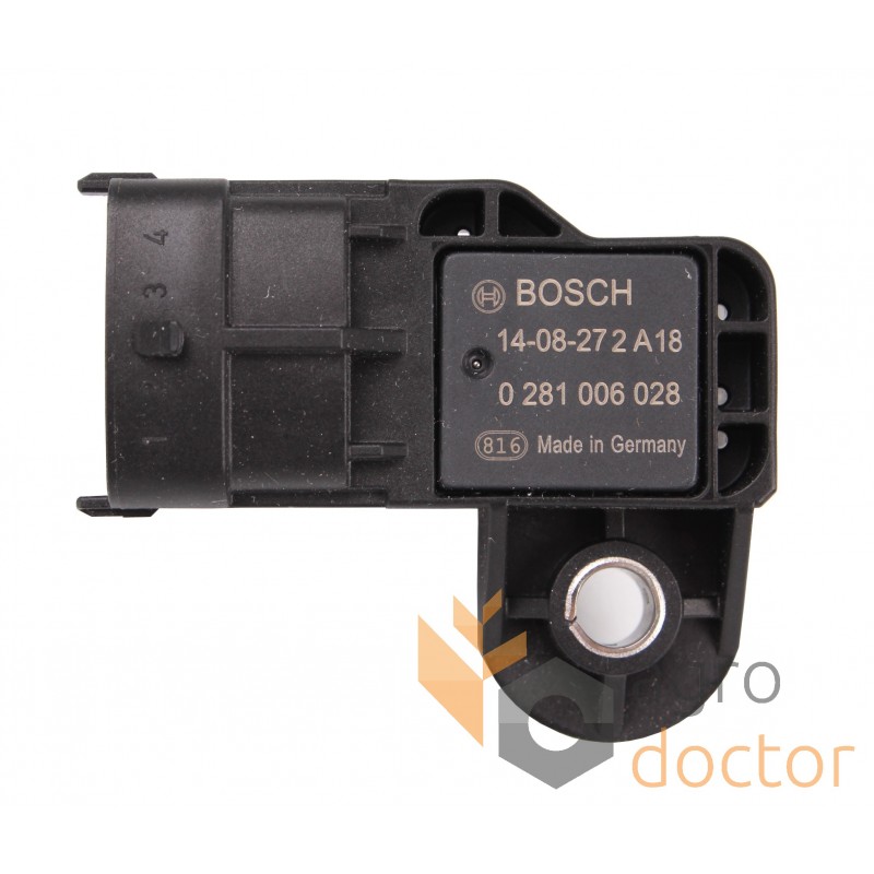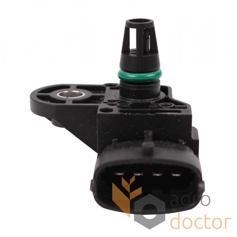 Датчик массового расхода воздуха, электронной системы управления двигателем тракторов Case-IH, New Holland. Длина - 60 мм., ширина - 48 мм., высота - 45 мм .. Каталожные номера: 504369148, 0281006028