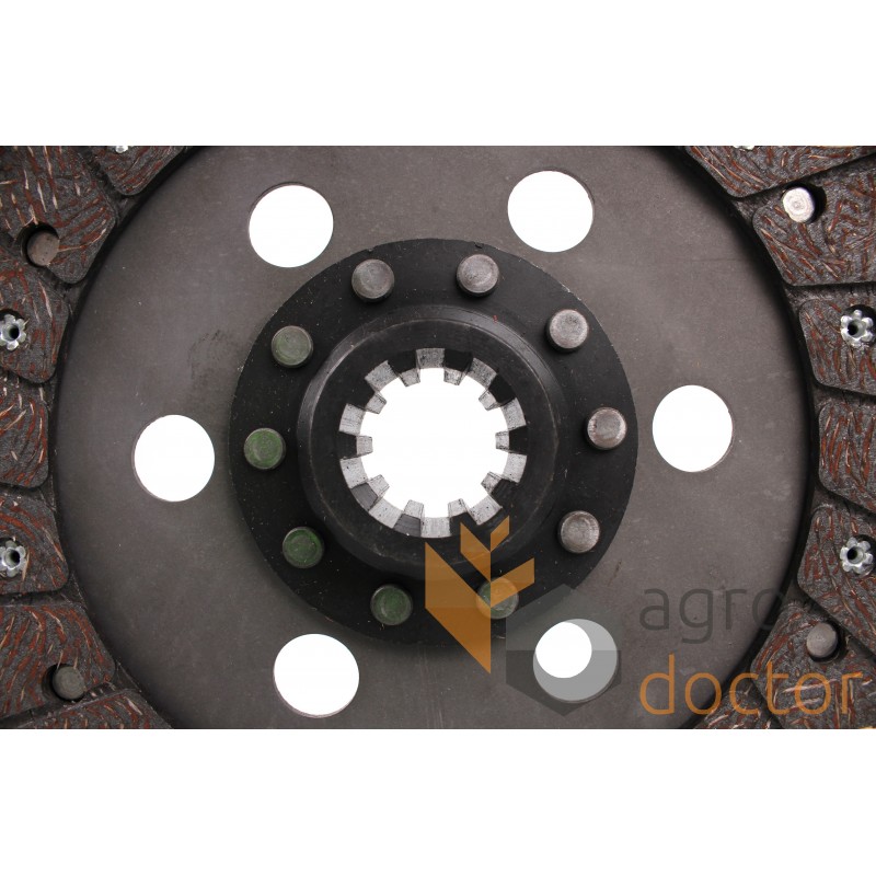 Диск сцепления (фередо) трансмиссии к зерноуборочным комбайнам New Holland (серий 8000, TC). Размери в мм: Внешний диаметр - 310 мм. Количество шлицев - 10. Каталожные номера: 80410704. Аналог.