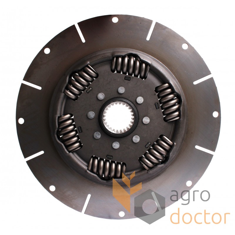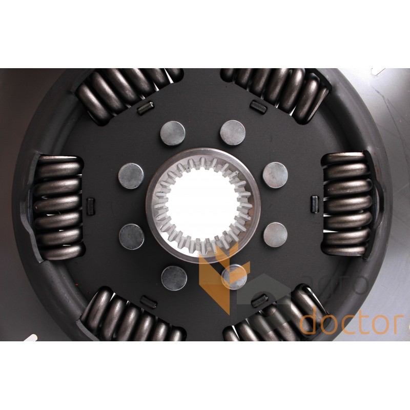 Сборочный узел состоящий из стальной пластины в виде диска с демпферными пружинами и втулкой со шлицами для установки на вал.