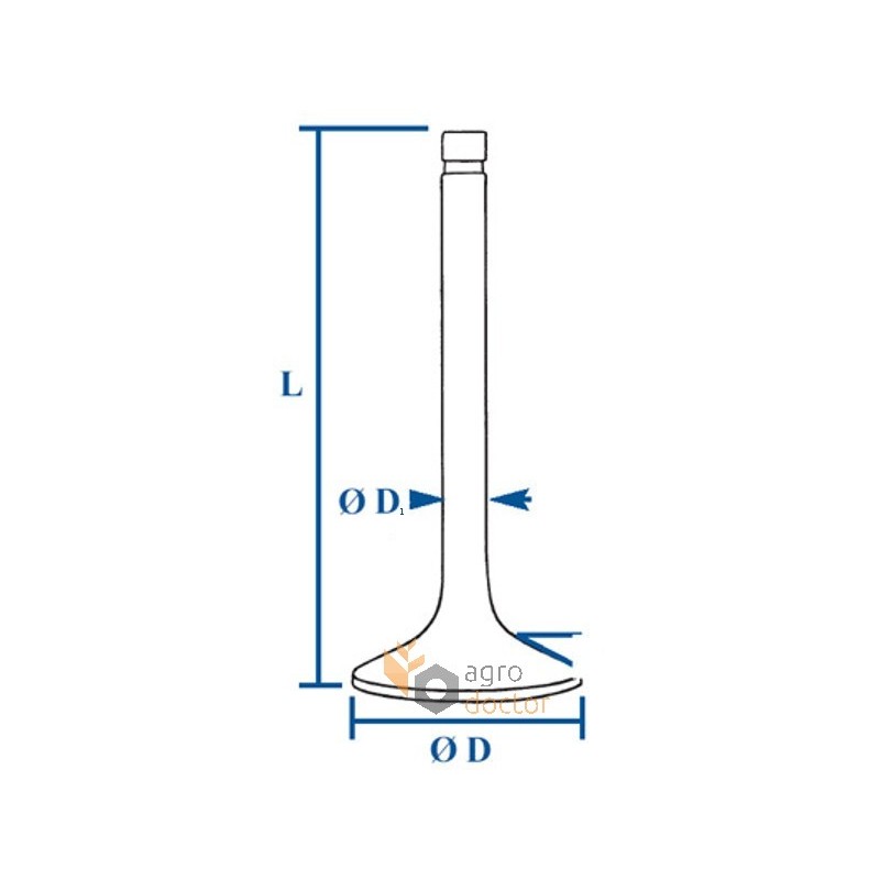 Впускной клапан ГРМ для комбайнов Massey Ferguson 86, тракторов Massey Ferguson (122, 130, 25, 30, 31, 35X, 825). Диаметр - 35.7 мм. ОЕМ номера: Massey Ferguson 3639238M1, Perkins 0910060, Bepco 30/42-15.
