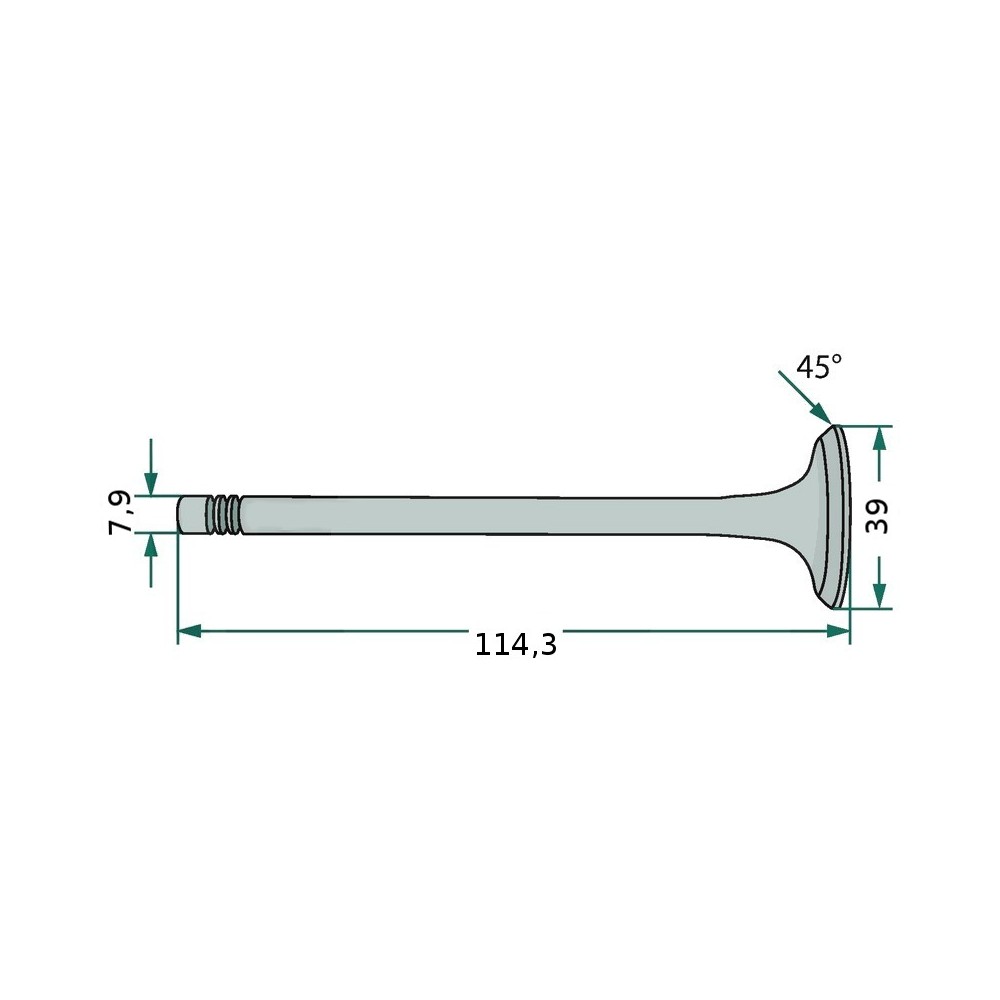 Впускной клапан ГРМ для комбайнов Massey Ferguson (35, 865), тракторов Landini, Massey Ferguson. Диаметр - 39 мм. ОЕМ номера: Massey Ferguson 731151M1, Perkins 31431261, Bepco 30/42-3.