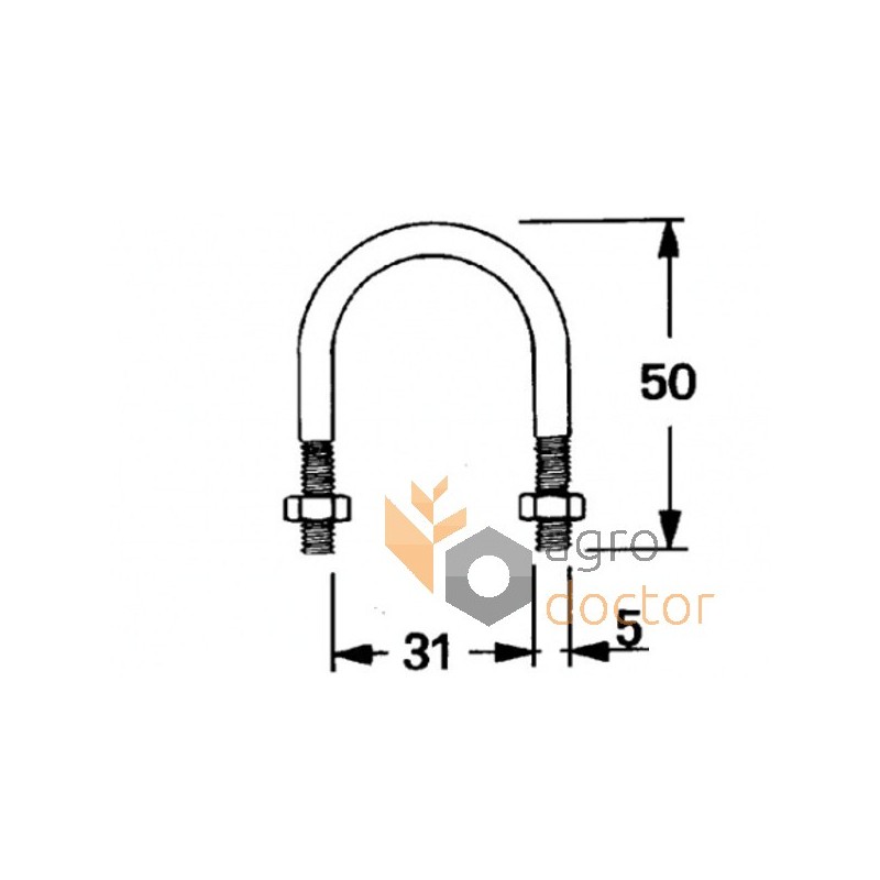Деталь в виде U-образной шпильки соответствующей формы и размеров. В комплект входят гайки. На наружную поверхность нанесено специальное покрытие.