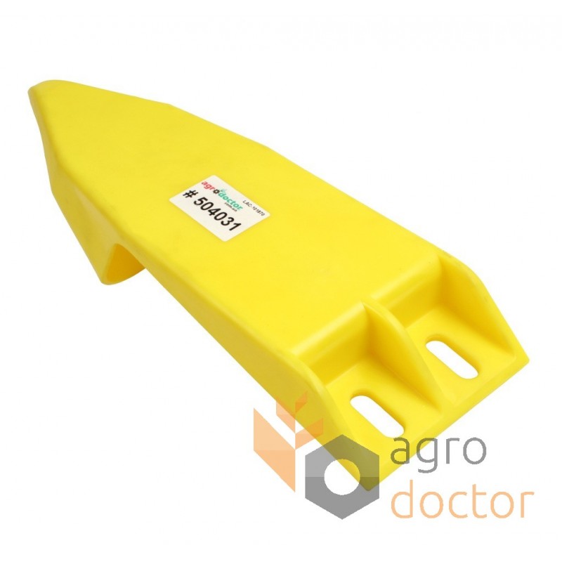 Наконечник в виде литой пластиковой детали сложной пространственной формы с двумя отверстиями для крепления для кукурузных жаток Geringhoff MS-400, MS-500, MS-800, MS-900, MS-1200. Длина - 350 мм, вес - 0.42 кг. ОЕМ номера 504031, 524033.