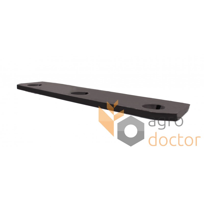 Нож канала (неподвижный). Каталожные номера: 1104.03.10.01, 0982.20.02.00, 58.441. Запчасть пресс-подборщика Welger AP41. Размеры в мм: Длина - 252. Ширина - 59. Количество отверстий крепления - 3.