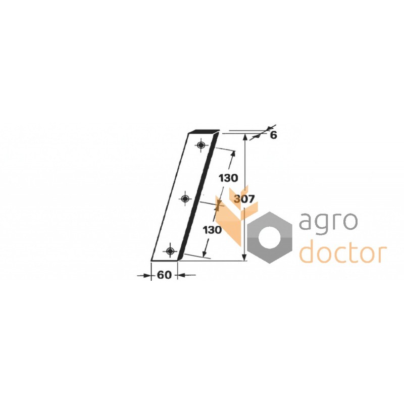 Нож канала (неподвижный). Каталожные номера: 1116.03.02.01, 0982.20.06.00, 58.451, 58.453. Запчасть пресс-подборщика Welger (AP61, AP63, AP630, AP71). Размеры в мм: Длина - 355 Ширина - 56 Количество отверстий крепления - 3.