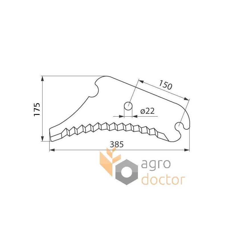 Нож пресс-подборщика Deutz-Fahr (565, 570, 575, 580, 590). Длина - 385 мм, ширина - 175 мм, толщина - 5 мм. Каталожный номер: 16518393