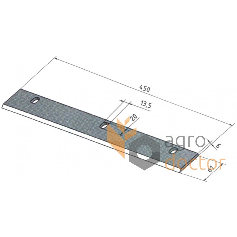 Нож измельчителя кукурузной жатки Capello. Размер 450х61х6 мм. Каталожные номера 03201900, 03.2019.00, 60-0450-03-01-3.