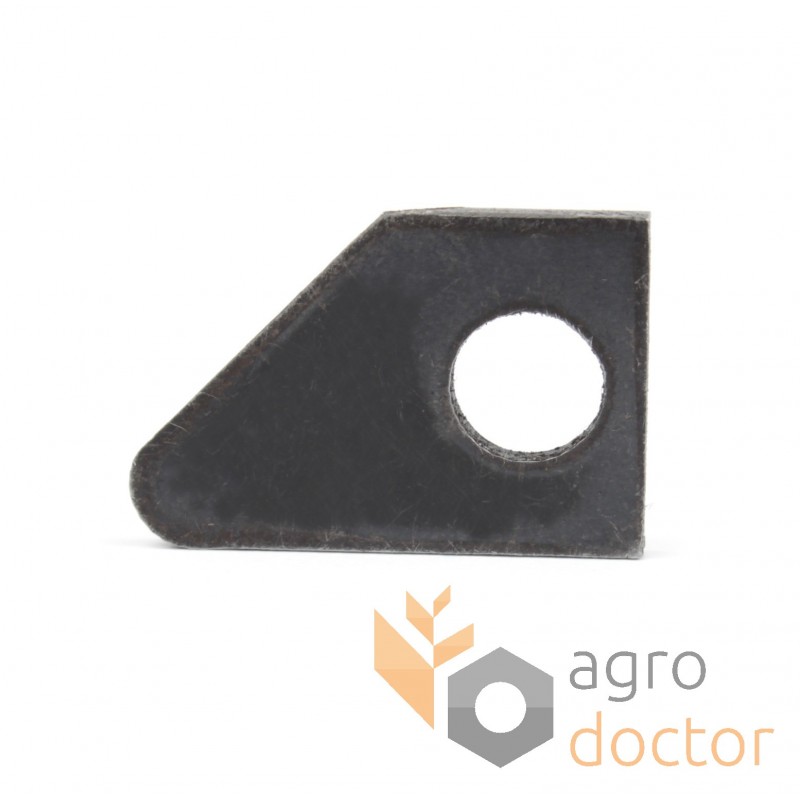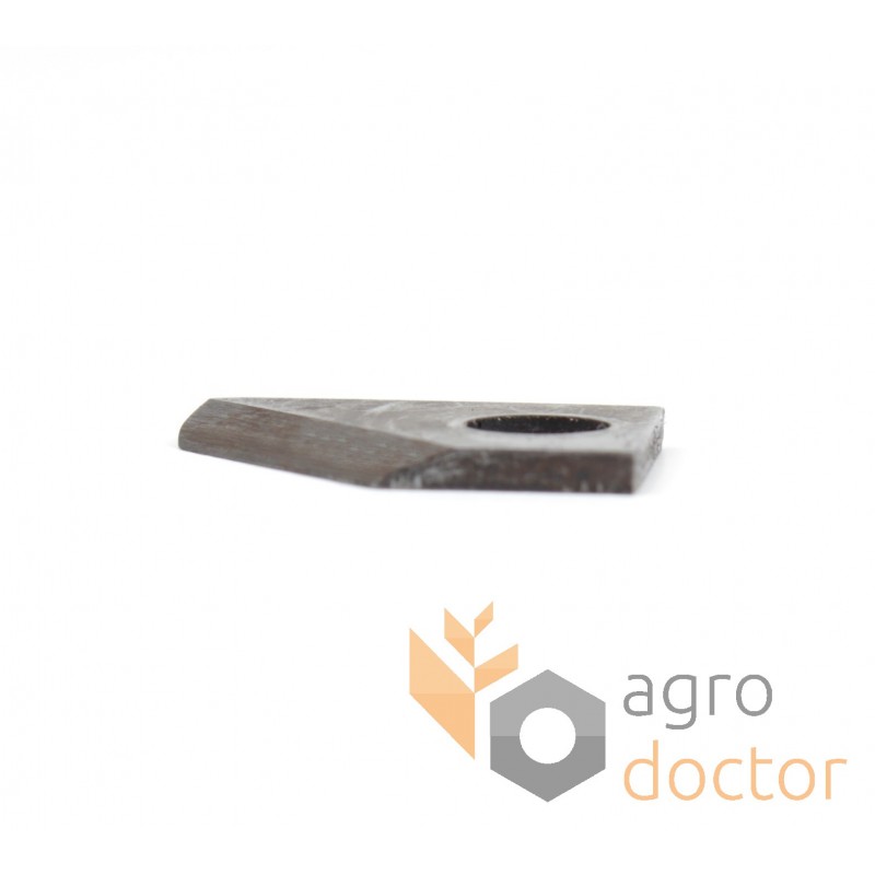 Деталь в виде металлической пластины, одна с продольных частей которой затачивается до необходимой остроты. Для крепления выполнено специальное отверстие. Деталь термически обработана с целью повышения прочности и износостойкости.