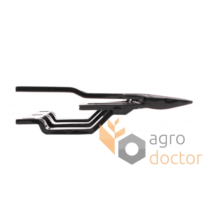 Кованая стальная деталь сложной пространственной формы в виде двузуба. У основания головки выполнены 2 отверстия для крепления к пальцевому брусу.