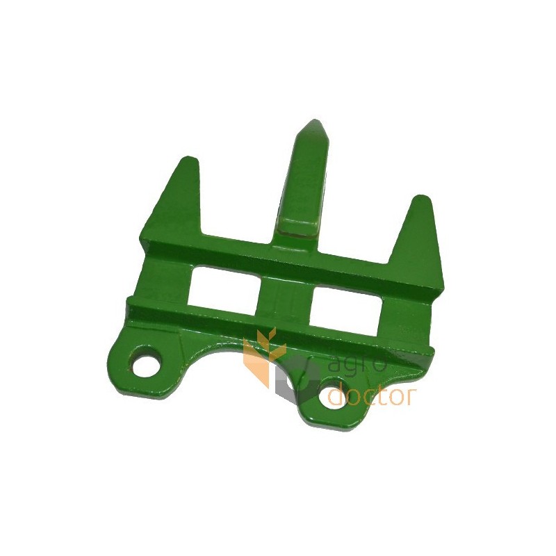 Палец тройной пальцевого бруса жатки зерноуборочных комбайнов John Deere . Размеры в мм: Длина - 130 Ширина - 135 Количество отверстий крепления - 2 Диаметр отверстий крепления - 10.5. Каталожный номер H229538. Аналог.