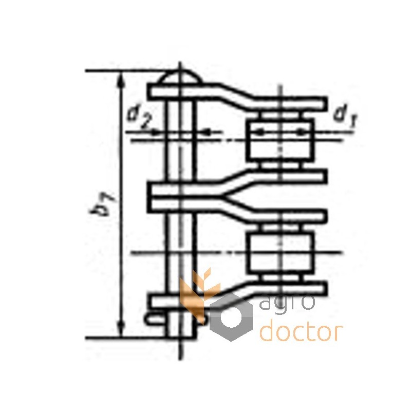 Переходное звено двухрядной роликовой цепи 10A-2 к зерноуборочным комбайнам Massey Ferguson (модели: 186, 206, 240). Шаг цепи - 15.875 мм.