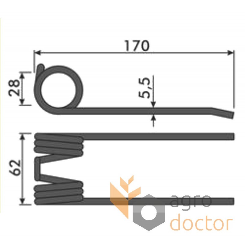 Граблина сгребателя пресс-подборщиков Deutz Fahr (E, F, FE, K, WE). Размеры в мм: Длина - 170 Внутренний диаметр - 28.5 Ширина - 62 . Каталожные номера: 06296285, 1.1417.160.122. Аналог.
