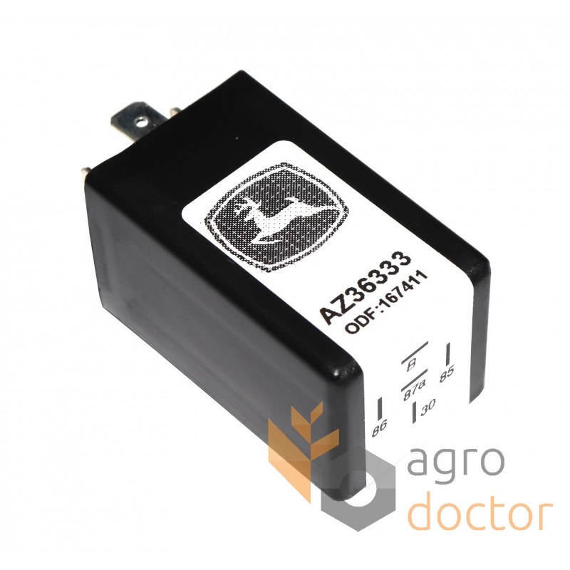 Реле электрической системы комбайнов John Deere. Длина – 60 мм., ширина – 30 мм., напряжение – 12V. Каталожные номера: AZ36333