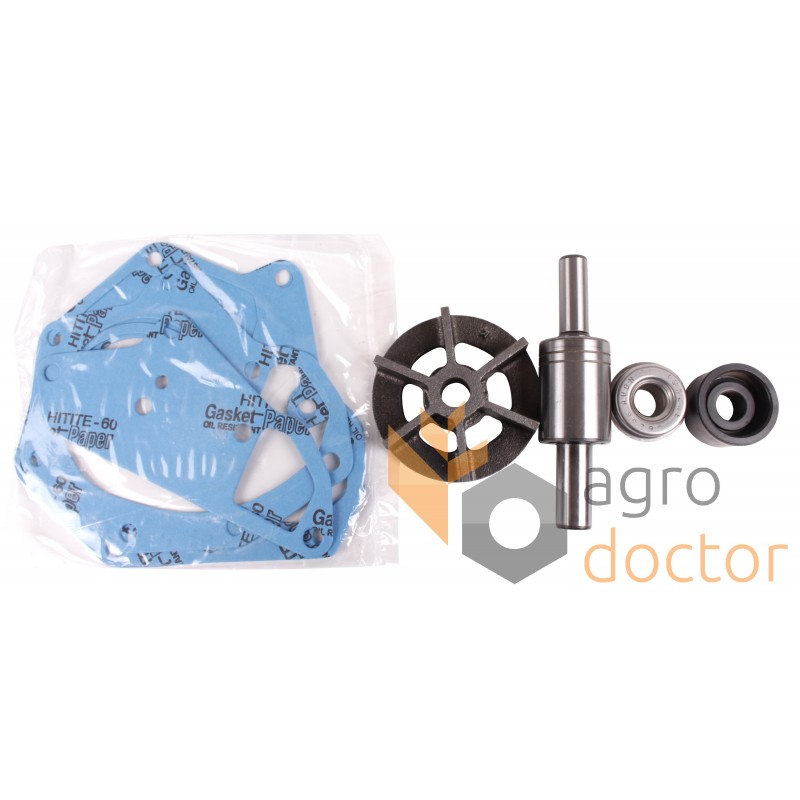 Набор деталей в составе которого есть валик, пружинный уплотнитель, манжета, крыльчатка, прокладки.