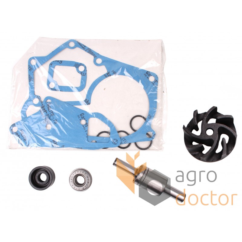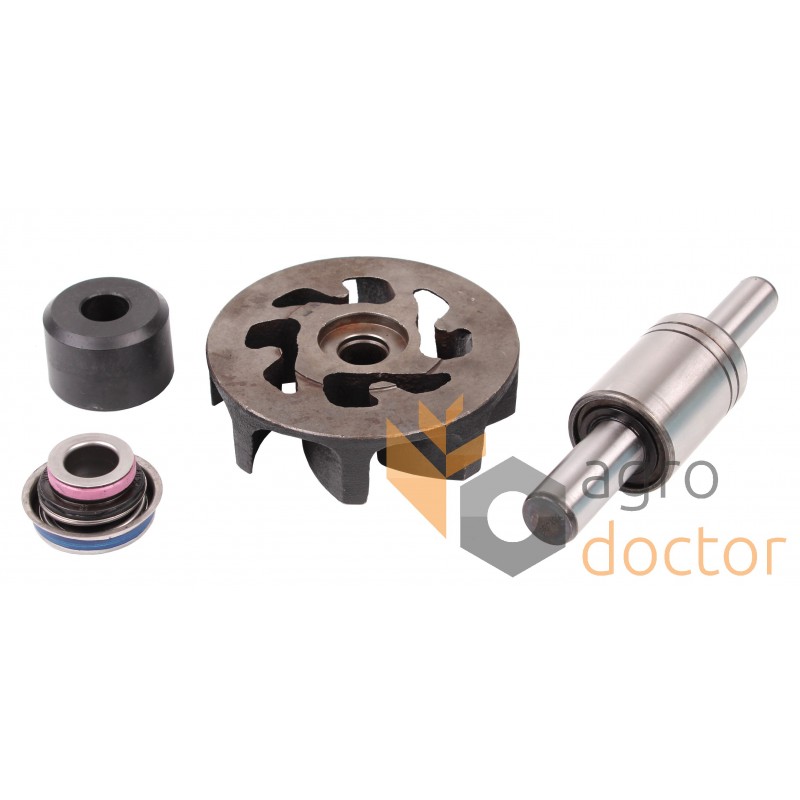 Набор деталей в составе которого есть валик, пружинный уплотнитель, манжета, крыльчатка, прокладки и уплотнительные кольца.