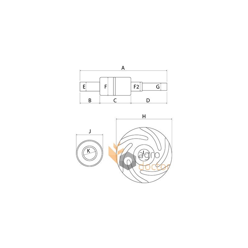 Набор деталей в составе которого есть валик, пружинный уплотнитель, уплотнительное кольцо, крыльчатка, прокладки.