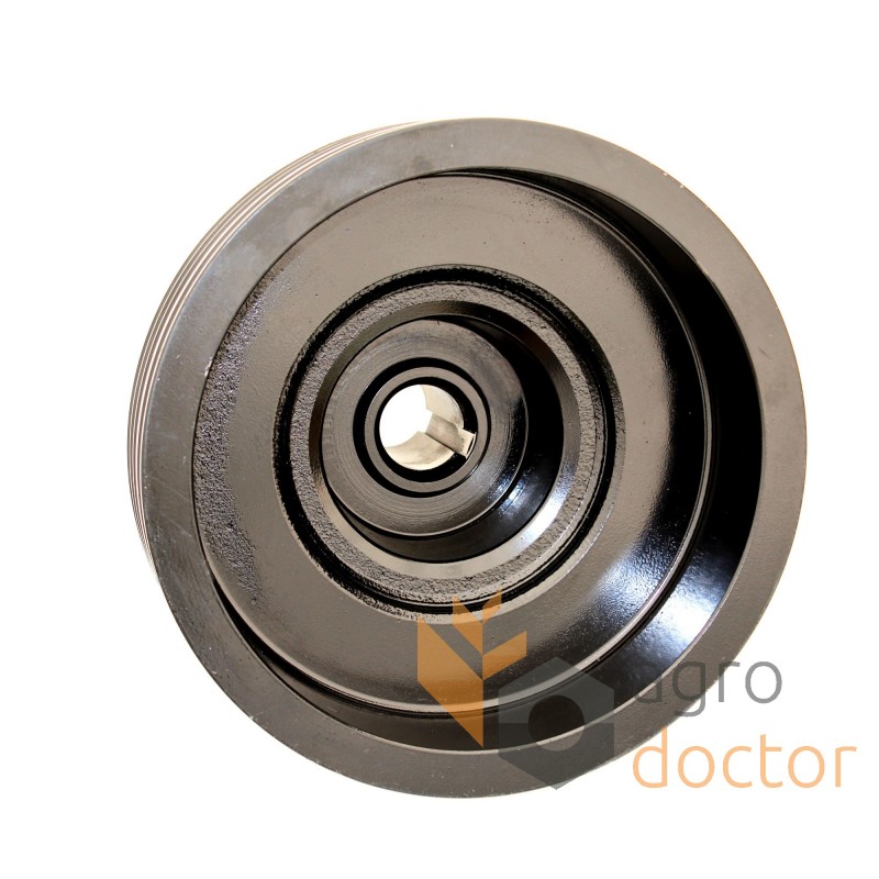 Шкив ременной двигателя зерноуборочных комбайнов New Holland (СS 6090, CSX 7080). Размеры в мм: Внутренний диаметр - 50 Внешний диаметр - 350 Высота - 250. Каталожные номера: 84460690. Аналог.