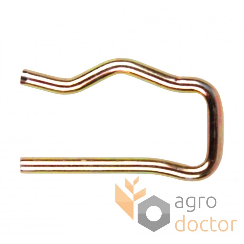 Шплинт крепления втулки жатки комбайна Dronningbord. Длина - 49 мм. ширина - 29 мм., диаметр проволоки - 4 мм.. Каталожные номера: D28281236