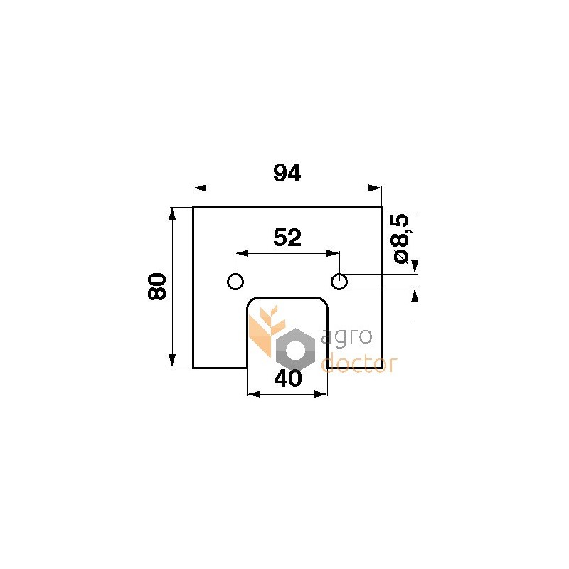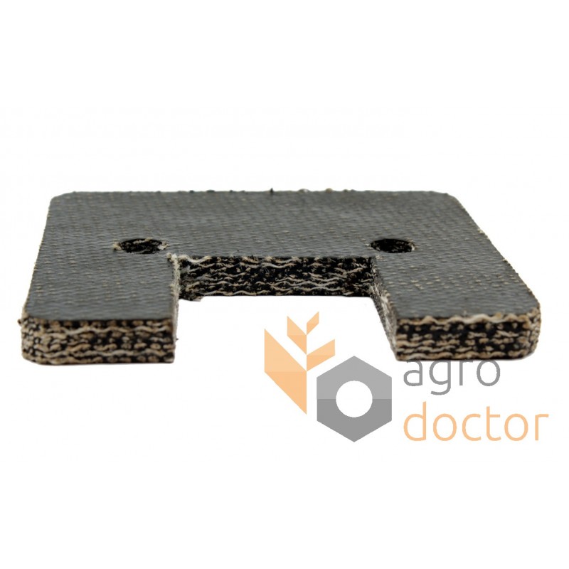 Скребок резиновый транспортера в виде прямоугольной детали для элеваторов зерноуборочных комбайнов Massey Ferguson 186, 187, 206, 240, 307, 400, 440. Длина - 80 мм, ширина - 94 мм, толщина - 8 мм. ОЕМ номер 404184М1.