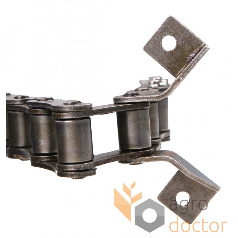 Цепь транспортерная S55V/SE/J2A роликовая длиннозвенная состоит из специальных звеньев с лапками, предназначенных для крепления рабочих органов (скребков, планок, гребенок и т.д.), чередующихся в заданной последовательности со звеньями приводных роликовых длиннозвенных цепей.
