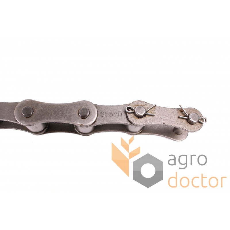 Транспортерная роликовая цепь S55V/2K1/J3A (S55VD) наклонной камеры зерноуборочных комбайнов John Deere (1068, 1072, 1075, 1075HY4, 1166, 1166HY/4, 1174, 1174HY/4, 1177, 1177HY/4, 1188, 1188HY/4, 950, 955, 960, 965H). Шаг цепи - 41,4 мм. Цена за 1 м.п.
