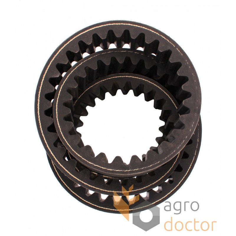 Резино-тканевое изделие в виде бесконечного клинового ремня широкого профиля , состоящего из резиновой основы упрочненной тканевым кордом. Внутренняя поверхность для улучшения охлаждения и гибкости преимущественно сделана зубчатой.