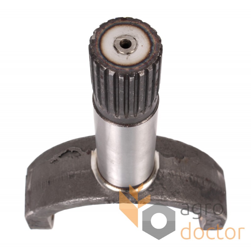 У основания вала выполнены шлицы для сочленения с балансиром косы. В плечах вилки проделаны отверстия для соединения с корпусом привода косы.