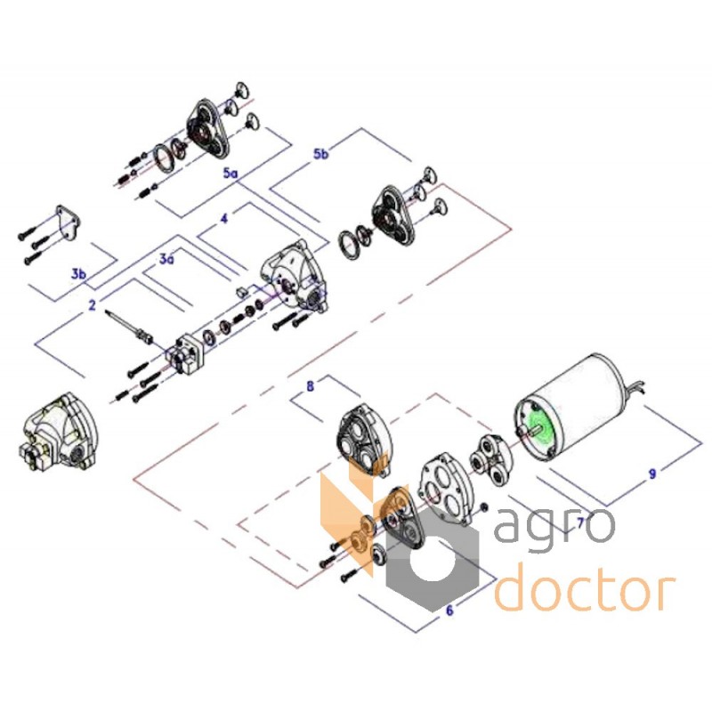 На валу закреплены крыльчатка, ступица и шестерня для привода вала. Для крепления насоса выполнены специальные отверстия.