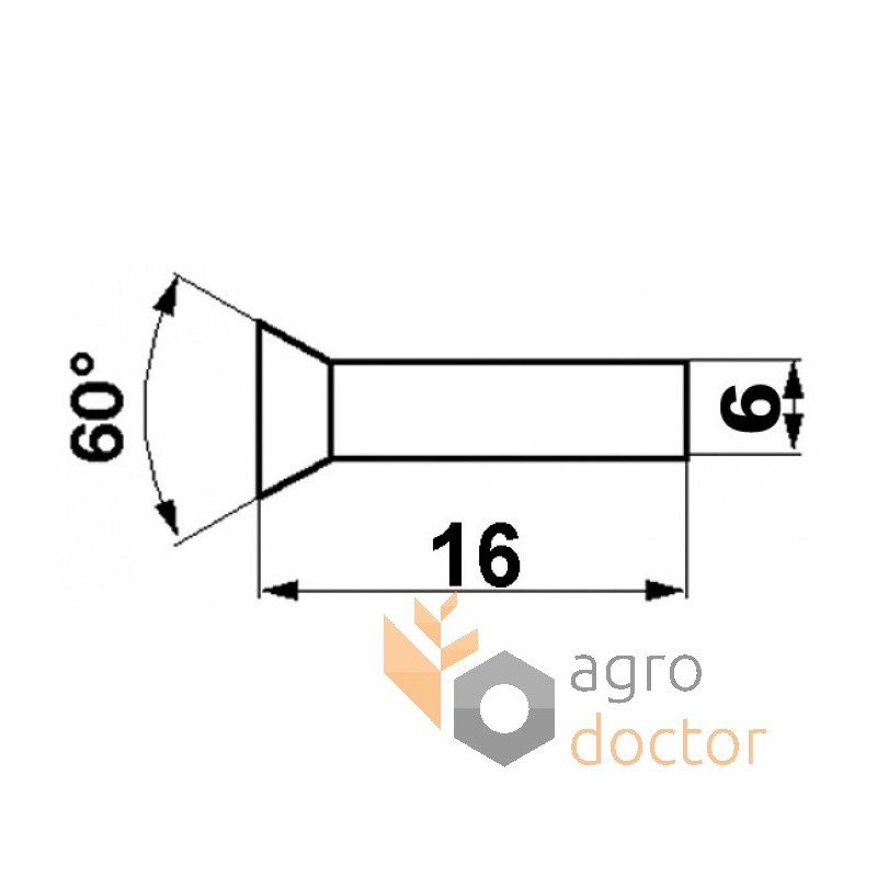 Заклепка косы жатки зерноуборочных комбайнов Claas (Commandor, Dominator, Lexion, Medion, Mega) и соевых жаток Claas (4.5m, 5.1m, 6.0m, 6.6m, 7.5m, 9.0m). Длина - 16 мм, диаметр - 6 мм. Каталожный номер 237663