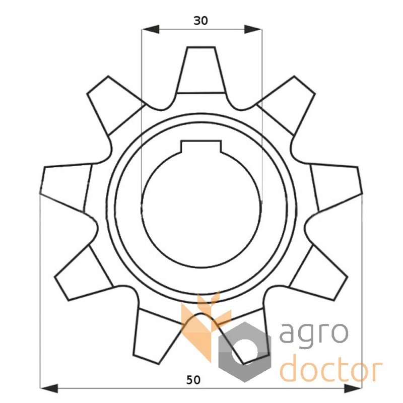 Звездочка цепной передачи привода зерноуборочных комбайнов Deutz Fahr M (1000, 1202, 2385). Размеры мм: Внутренний диаметр - 30 Количество зубов - 9. Каталожные номера 1.1116.160.003.00. Аналог.